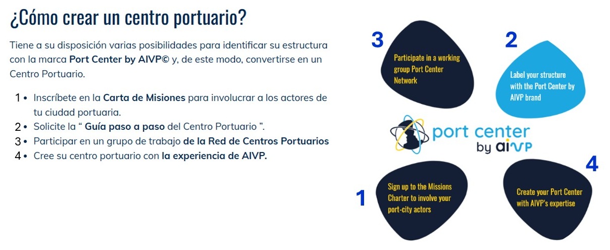 Las gráficas a continuación muestran como AIVP tiene una estrategia para crear bajo su marca, los Centros Portuarios para la participación ciudadana: